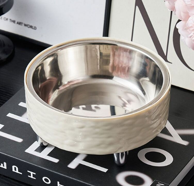 ストーン調デザインがおしゃれな、犬猫兼用の分離型ペットえさボウルです。