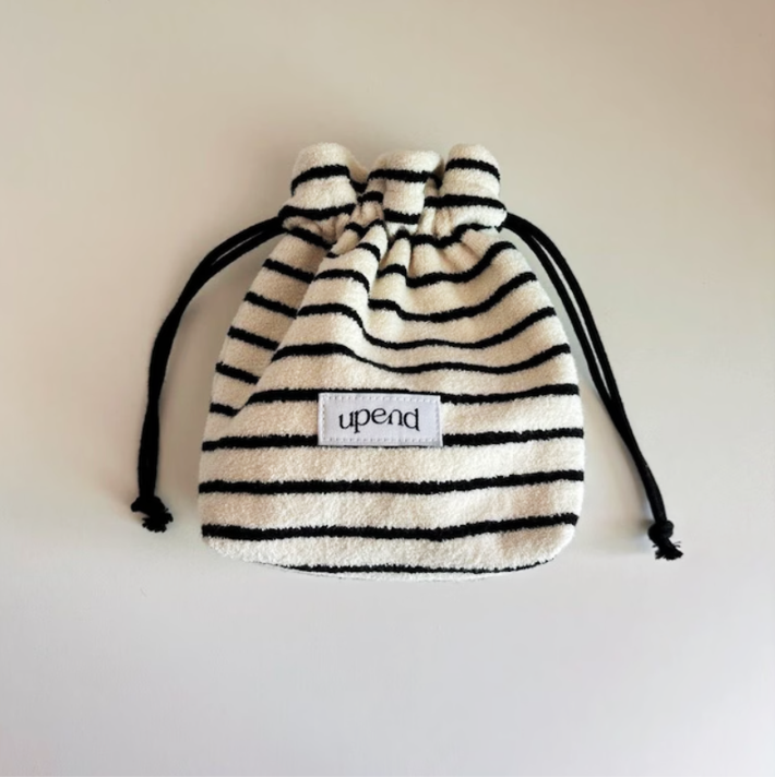 もこもことしたテリー生地が魅力の巾着タイプのマルチポーチです。