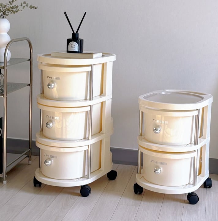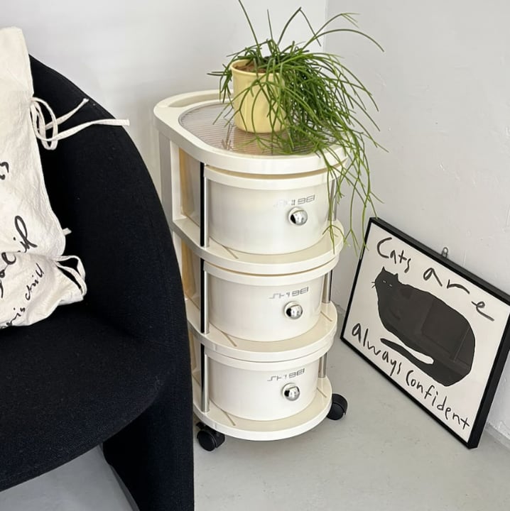 韓国雑貨 3段収納棚 移動式トロリーラック 曲線美 便利 おしゃれ