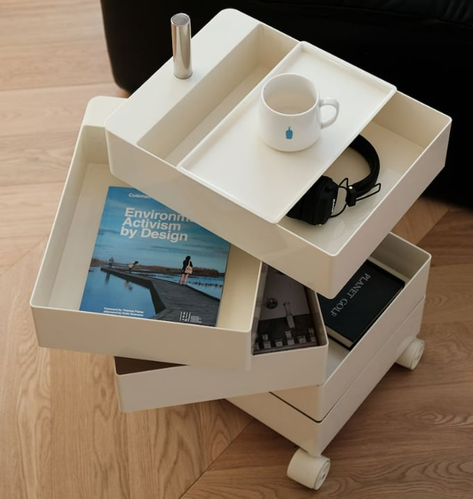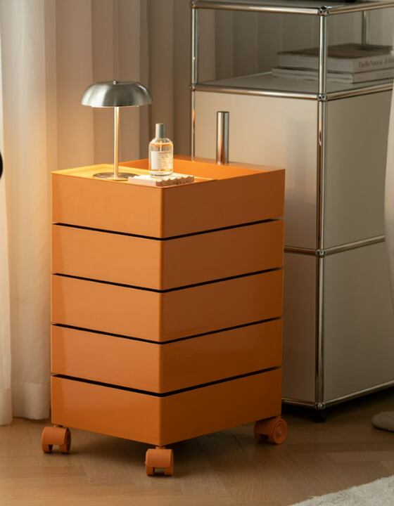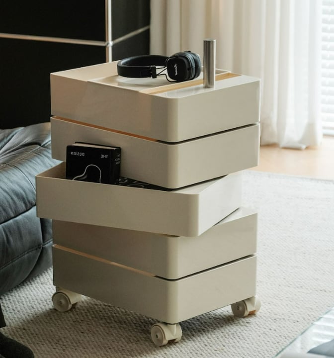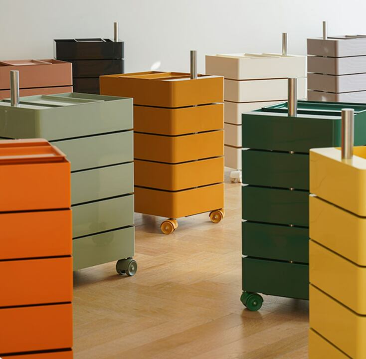 感性デザインが際立つ、5段すべて回転式引き出しのトロリーラックです。