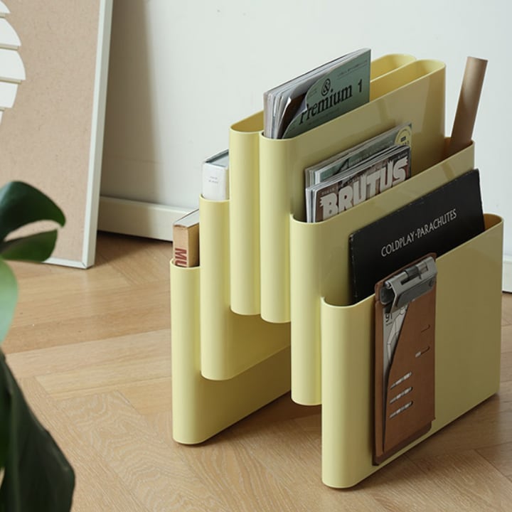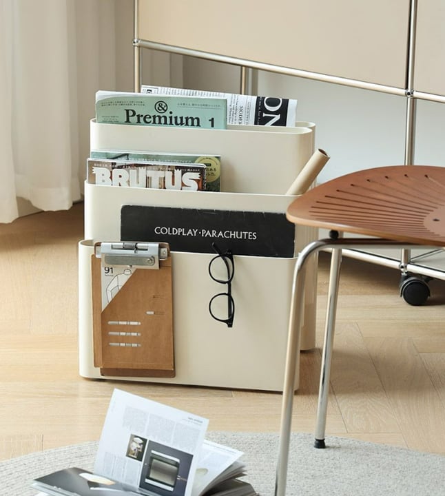 ABS素材を採用し、軽量で扱いやすく、雑誌や小物をすっきり整理できます。