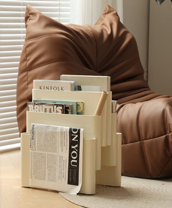 このマガジンラックなら、収納力とデザイン性を両立し、空間をより洗練された雰囲気へ導いてくれます。