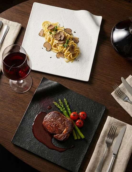 ・マット質感の高級デザイン:落ち着いた質感が料理を美しく見せ、モダンな雰囲気を演出します。