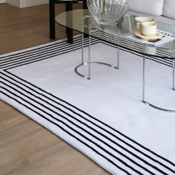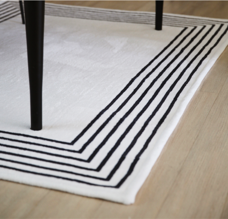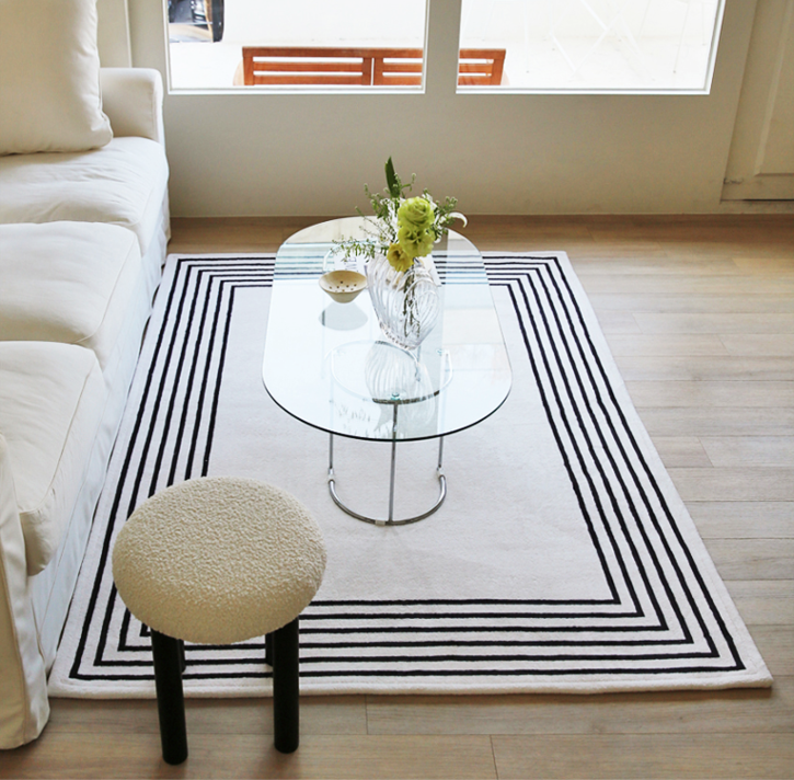 モノクロのナチュラルラインが空間にすっきりとした印象を与える万能ラグです。
