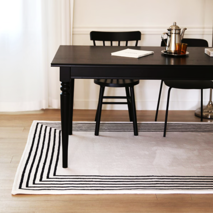 ・モノクロストライプの洗練デザイン:シンプルでモダンなストライプ柄が、どんな空間にも自然に馴染みます。