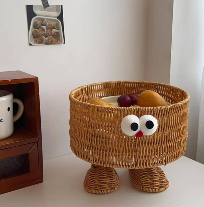 このユニークな目付きラタントレイなら、収納とインテリア性を両立し、空間に遊び心あるアクセントを添えてくれます。