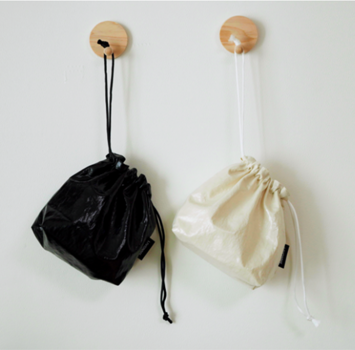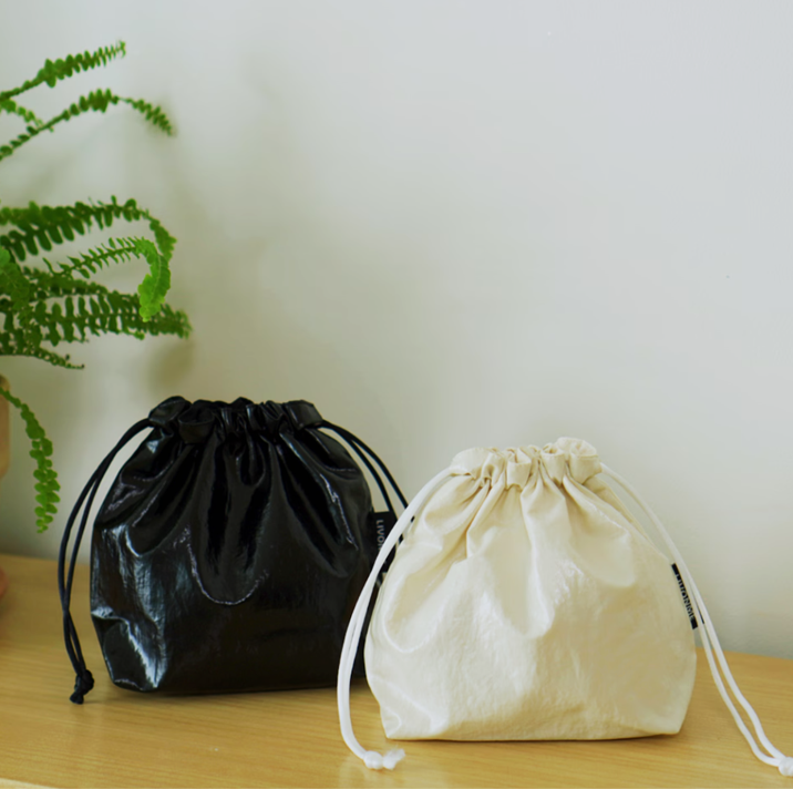 韓国雑貨 巾着ポーチ 光沢 モダン 化粧品 小物入れ 収納 おしゃれ 2カラー
