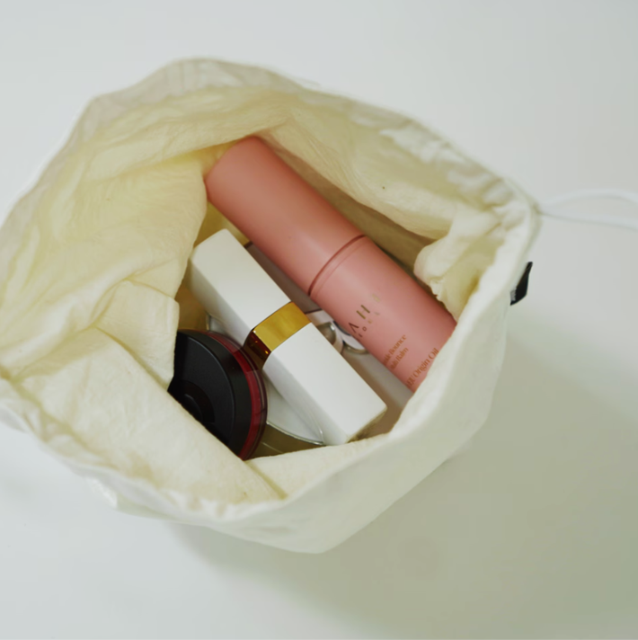 さりげない光沢が上品に映える巾着タイプのインナーポーチです。