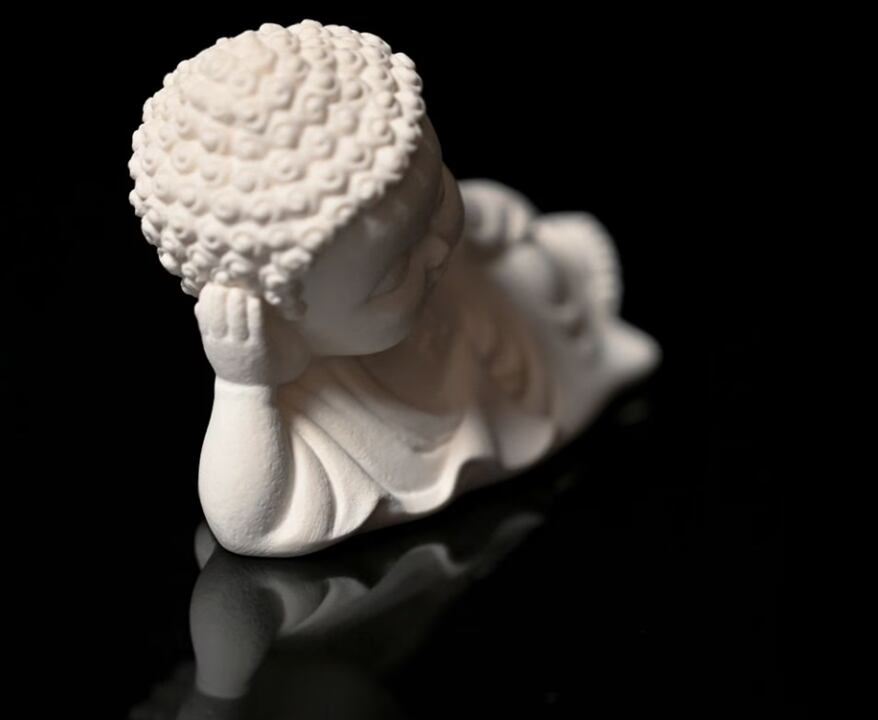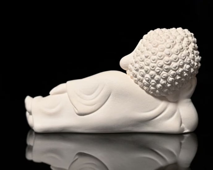この横向き仏陀オブジェなら、飾るだけで心が和むモダンなアクセントを添えてくれます。
