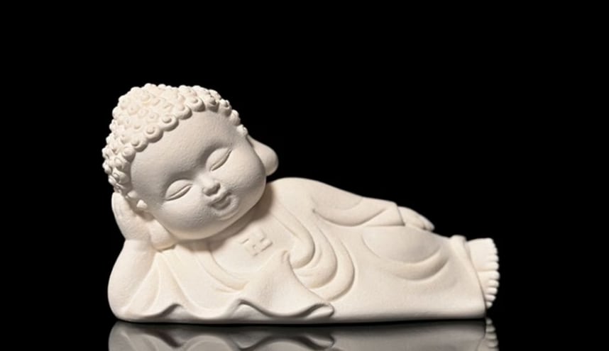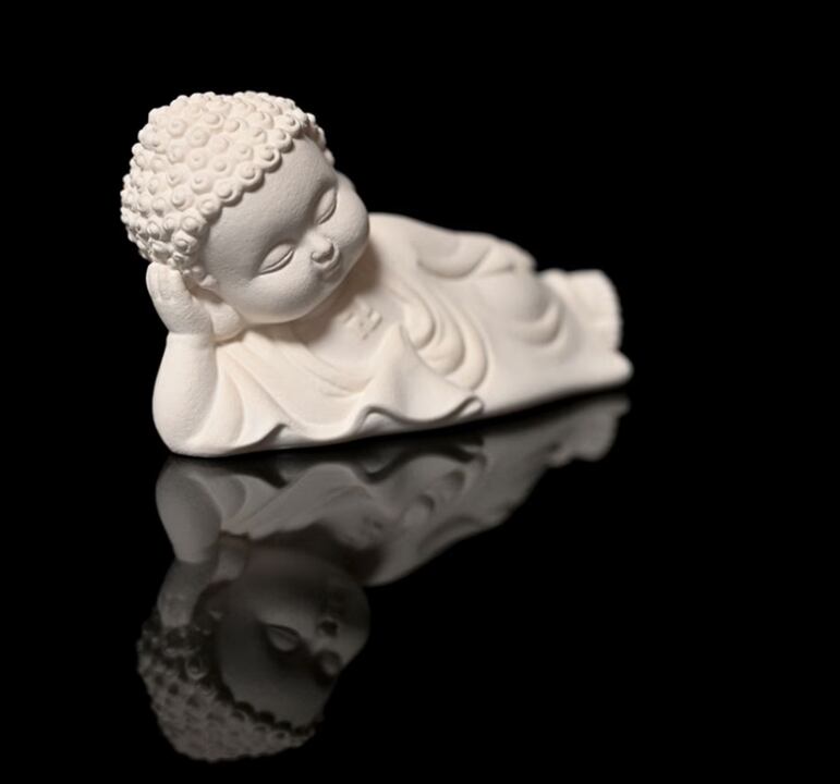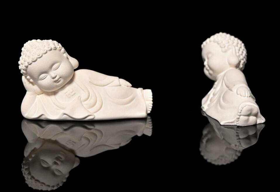 横向きに瞑想する姿をモチーフにした、穏やかでかわいらしい雰囲気の仏陀オブジェです。