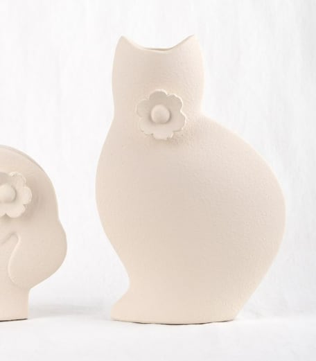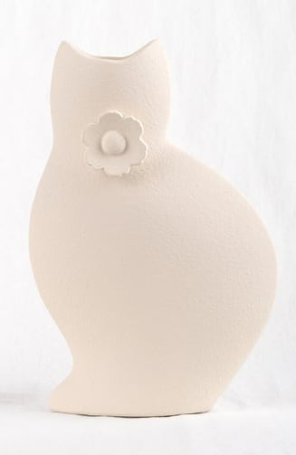 ネコのシルエットをモチーフにした、かわいさと存在感を兼ね備えたネコ型花瓶です。