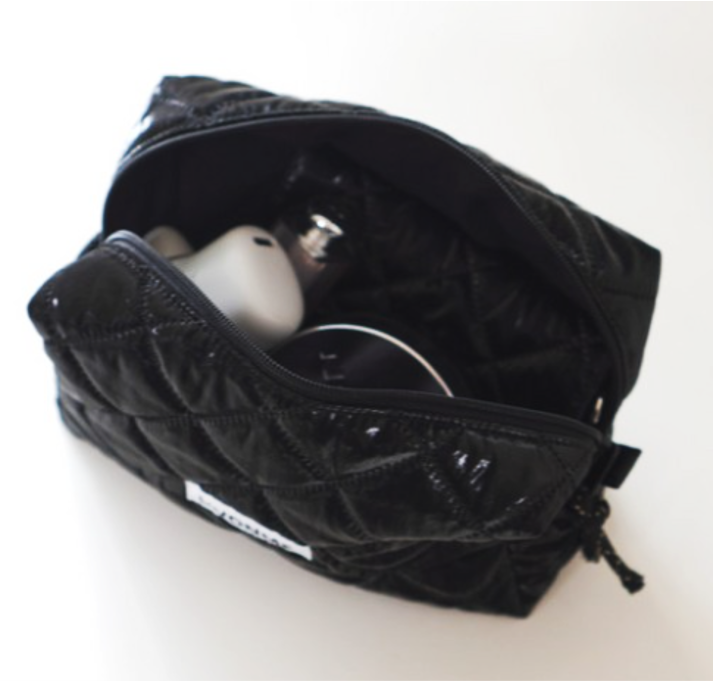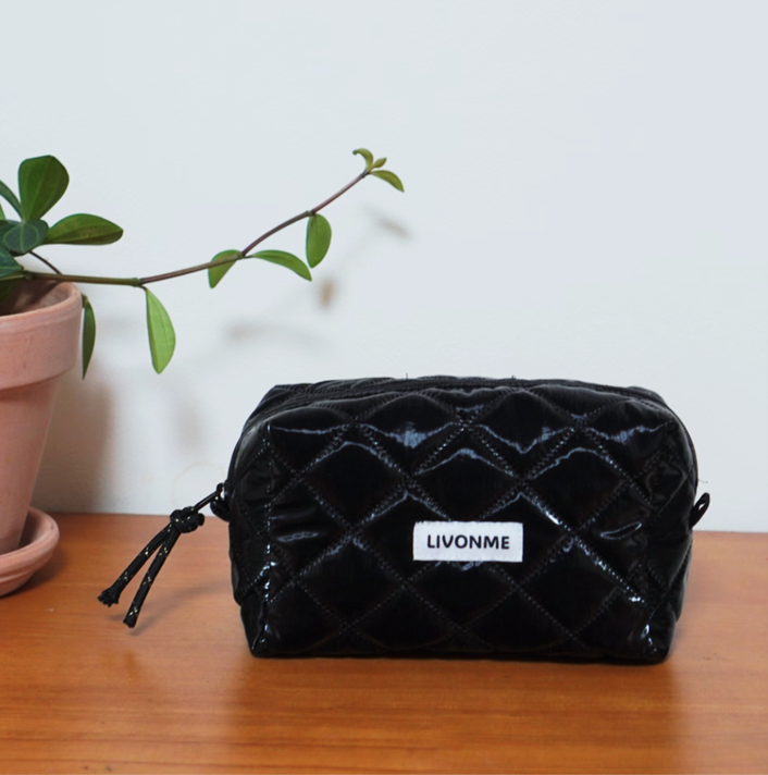 韓国雑貨 スクエアポーチ キルティング 光沢 化粧品 小物入れ