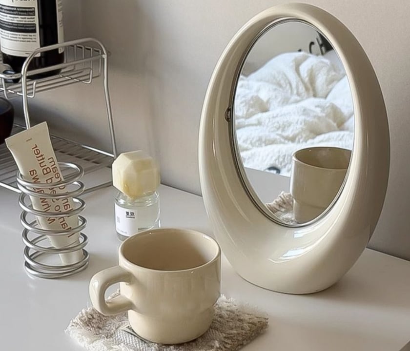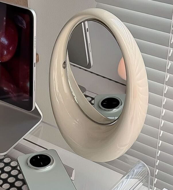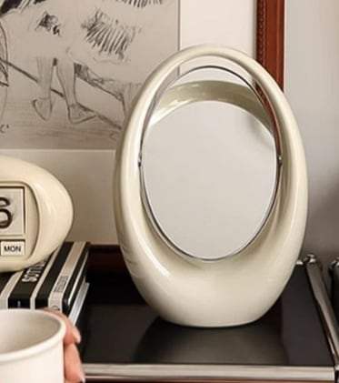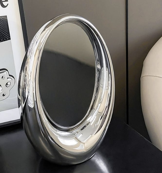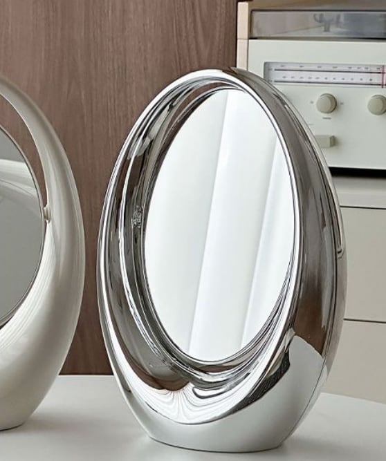 韓国雑貨 卓上両面鏡 曲線デザイン 楕円オブジェ おしゃれモダン