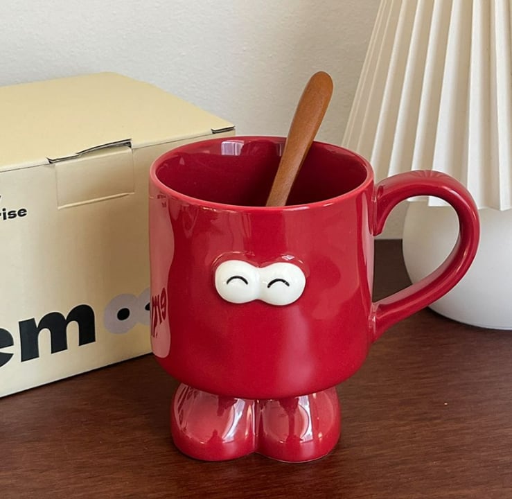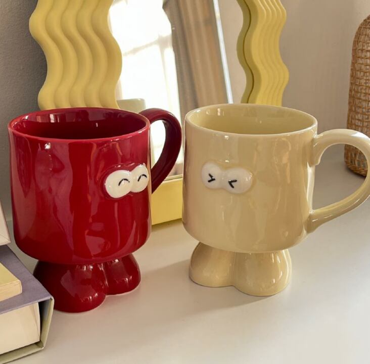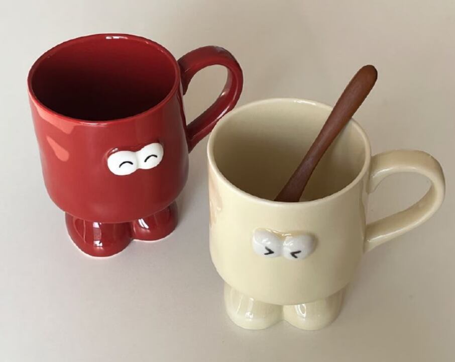 かわいい足で立つユニークなデザインが魅力のスタンディングマグカップです。