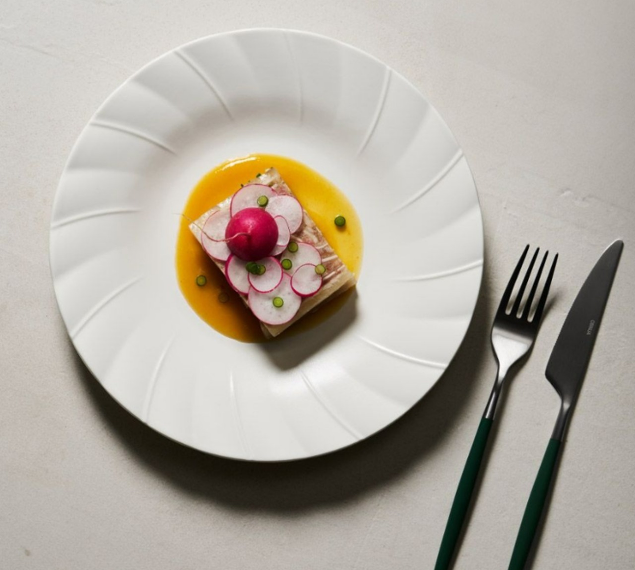 白を基調としたシンプルさ:どんな料理にも合わせやすく、盛り付けをより美しく見せます。