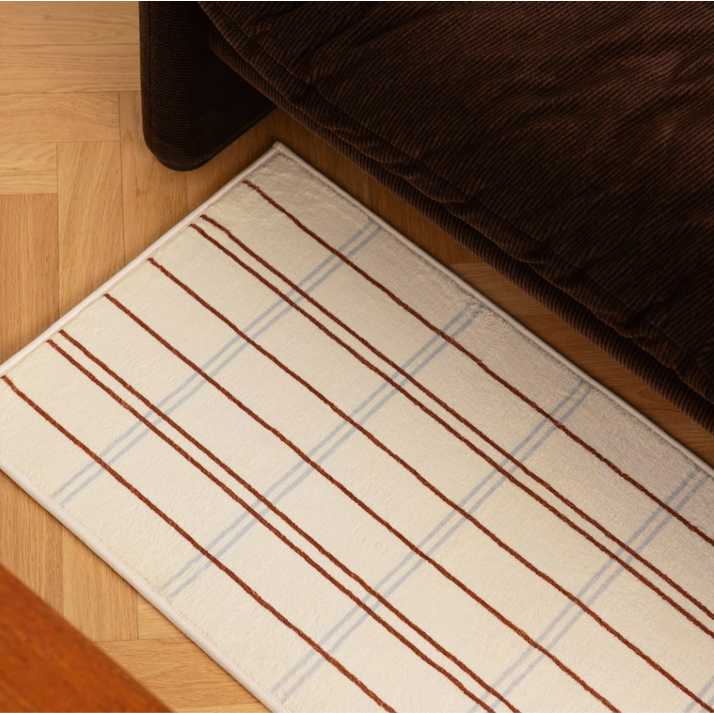 ・ツートーンチェックの洗練デザイン:落ち着いたブリックブラウンのツートーン柄が、空間をおしゃれに引き締めます。