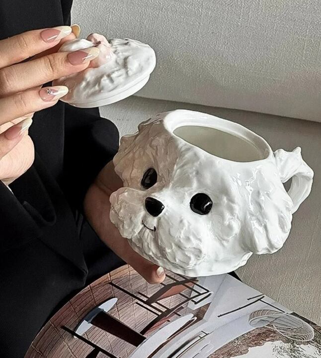 かわいい犬の顔をモチーフにしたフタ付きマグカップは、毎日のカフェ時間を癒しのひとときに変えてくれます。