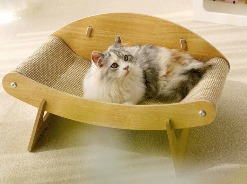 ・椅子型の曲線デザイン:身体を包み込むようなカーブが、猫の休憩姿勢に自然にフィット。