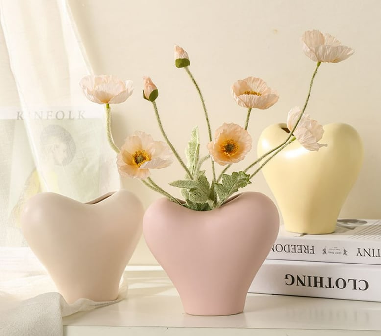 このハート型花瓶なら、飾るだけで空間に“かわいい高級感”を簡単にプラスできます。