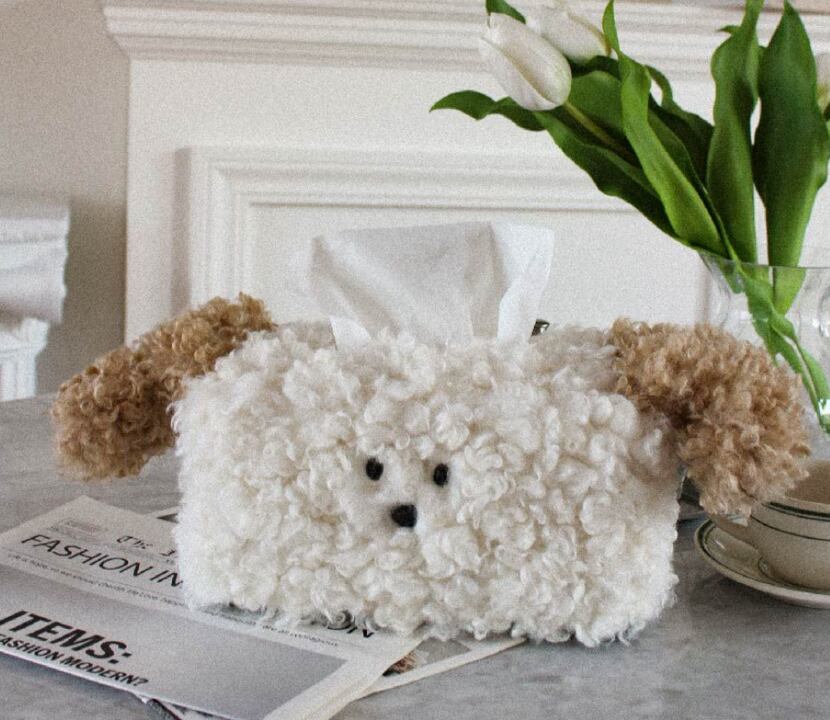 韓国雑貨 イヌ顔ティッシュケースカバー 犬 もこもこ かわいい