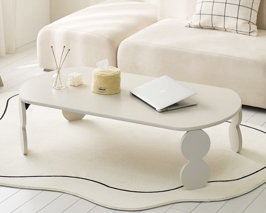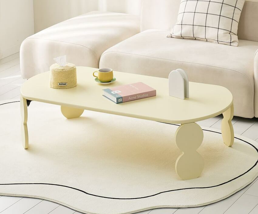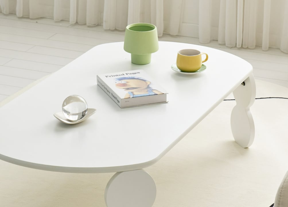 韓国雑貨 折り畳みラウンドテーブル 丸みデザイン 横長 おしゃれ