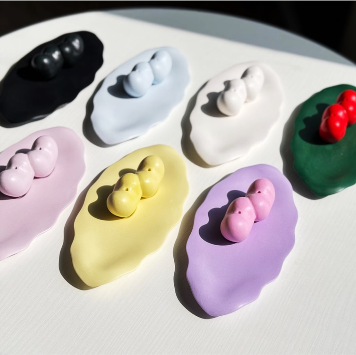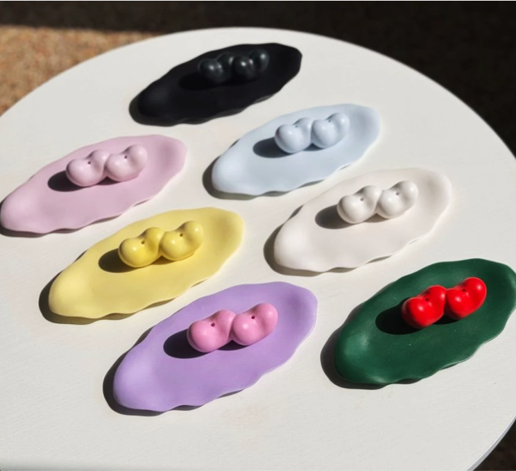 ・チェリーデザイン:お香を2本挿すとさくらんぼのように見える、遊び心のあるユニークな形です。
