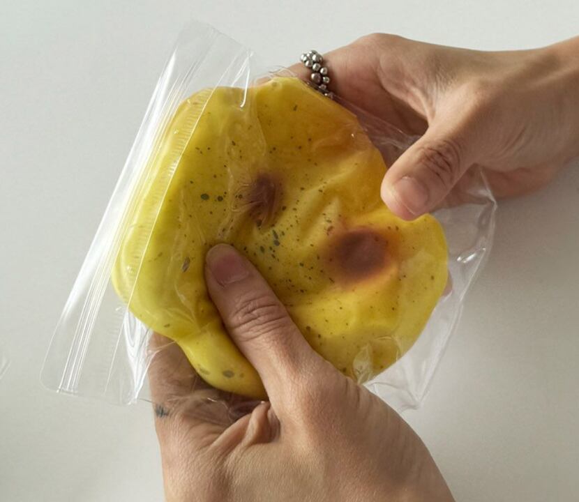 もちもちとした柔らかさがクセになる、じゃがいもパン風のユニークなスクイーズです。