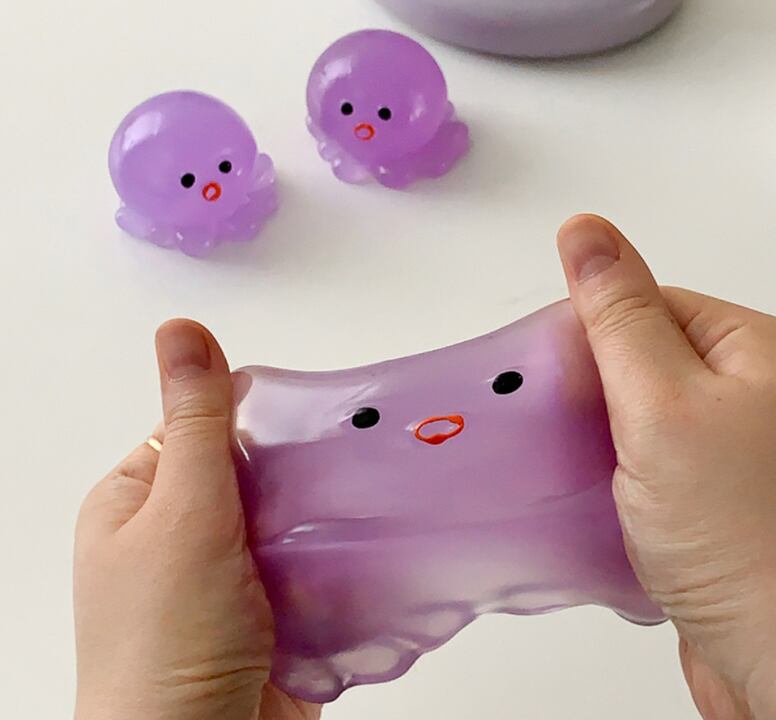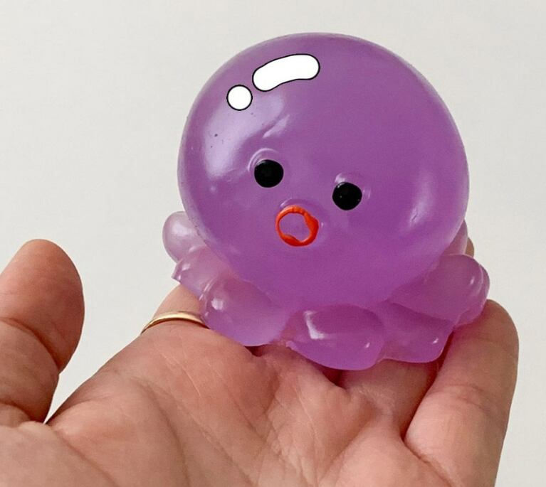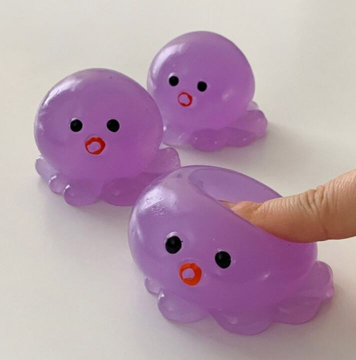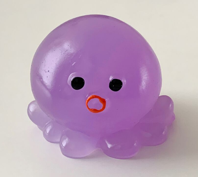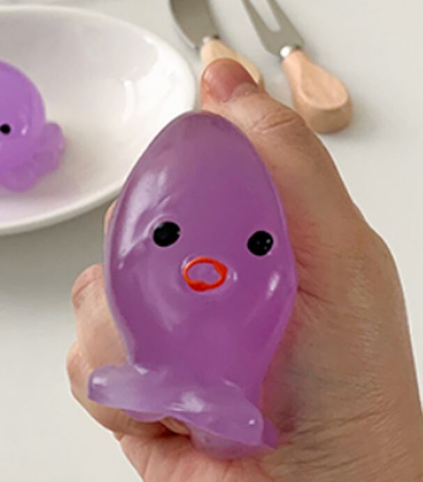 ぷにっとした丸いフォルムがかわいい、癒し系のたこスクイーズです。