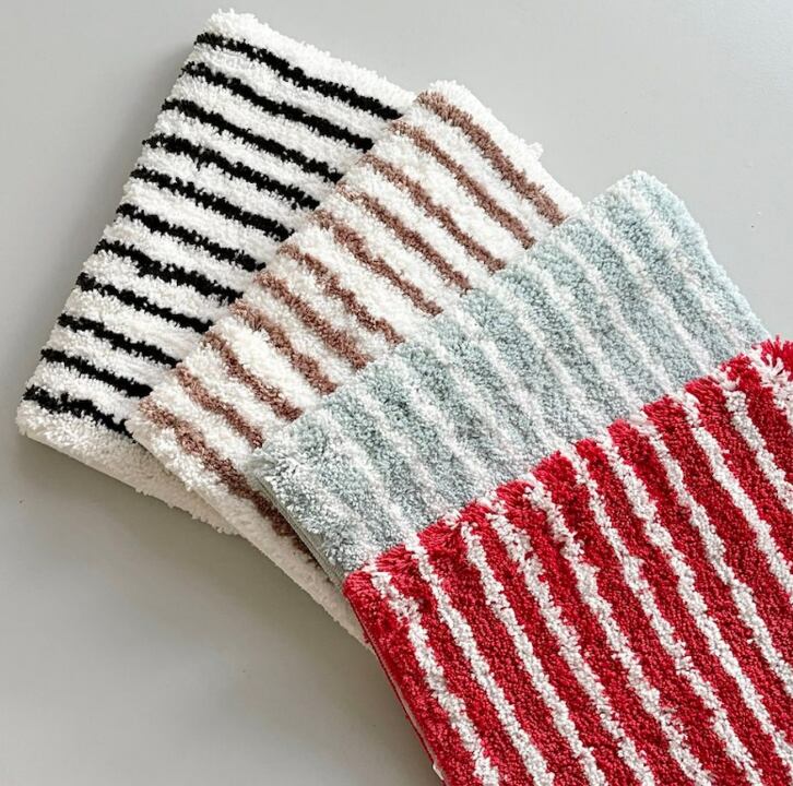 韓国雑貨 ストライプ床マット タフト 浴室 玄関 おしゃれ モダン
