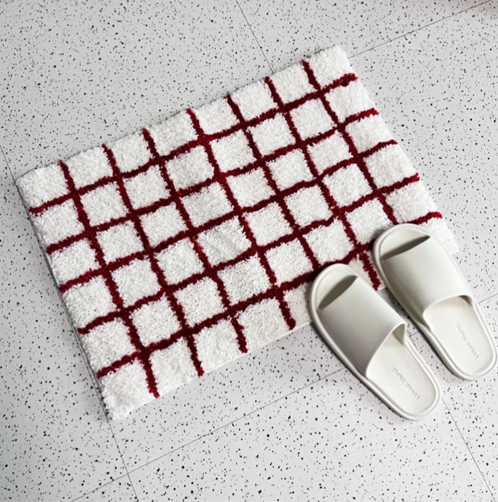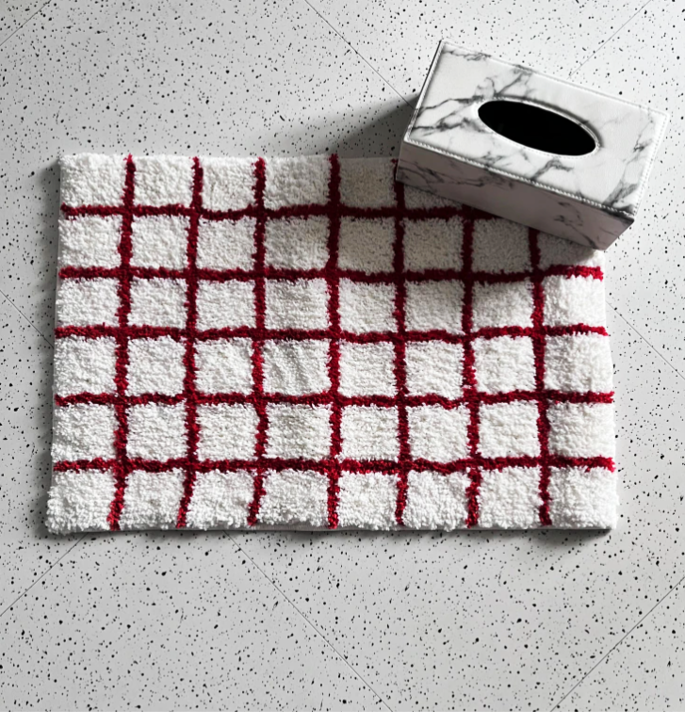 ふわふわのタフティングが心地よい、チェック柄のミニラグです。