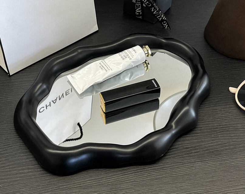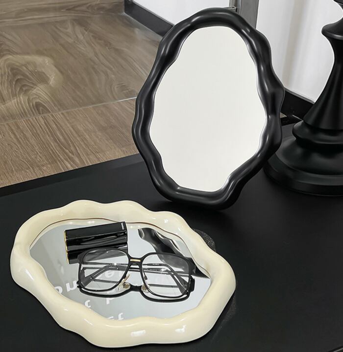韓国雑貨 ウェーブミラー 曲線鏡 トレイ 立体感 おしゃれ モダン