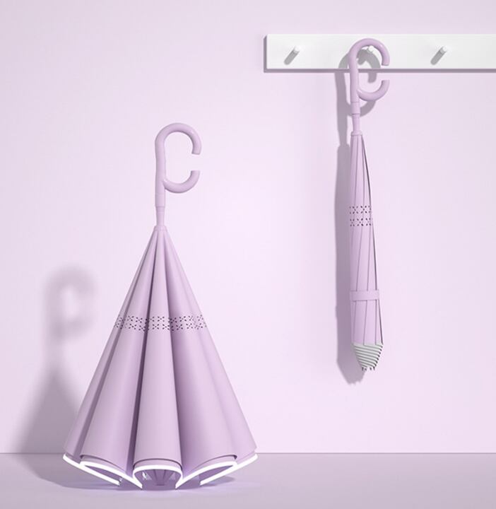 C型持ち手で使いやすい、便利でおしゃれな逆さ構造の長傘です。