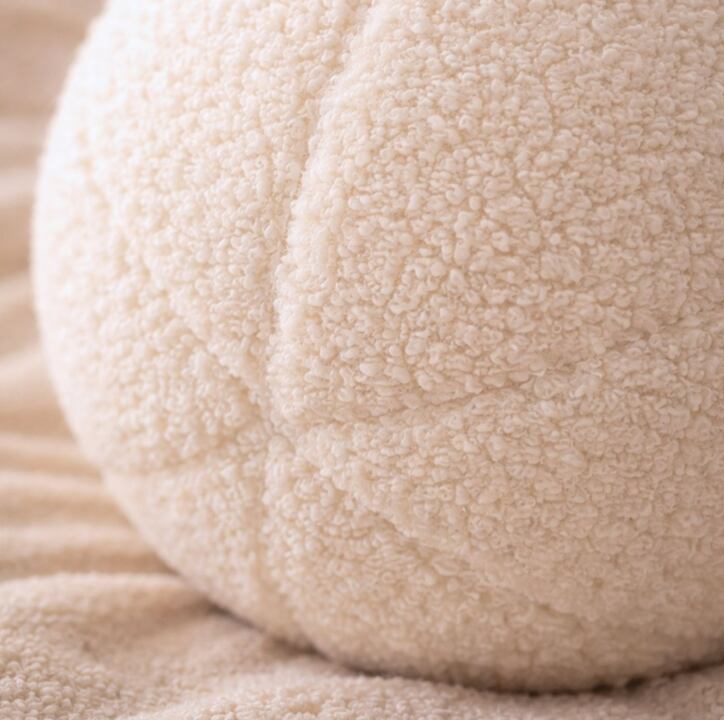 ふんわりとした丸いフォルムが魅力の、ブークレ素材を使用したラウンドクッションです。