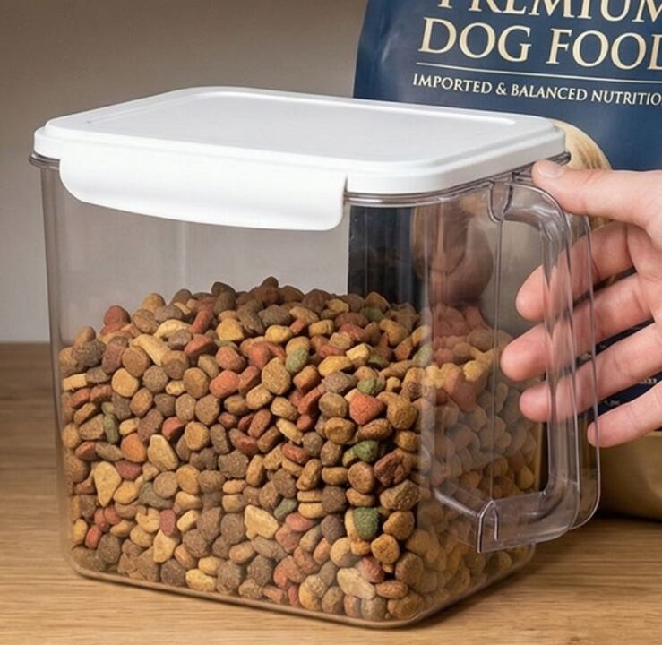 ペット用えさの鮮度をしっかり守る、密閉型のペット用えさ保管容器です。