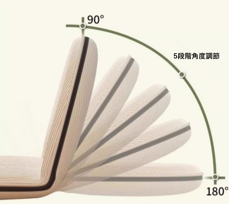 ・5段階の角度調節機能:背もたれを90~180度で調整でき、作業からリラックスまで好みの姿勢を選べます。